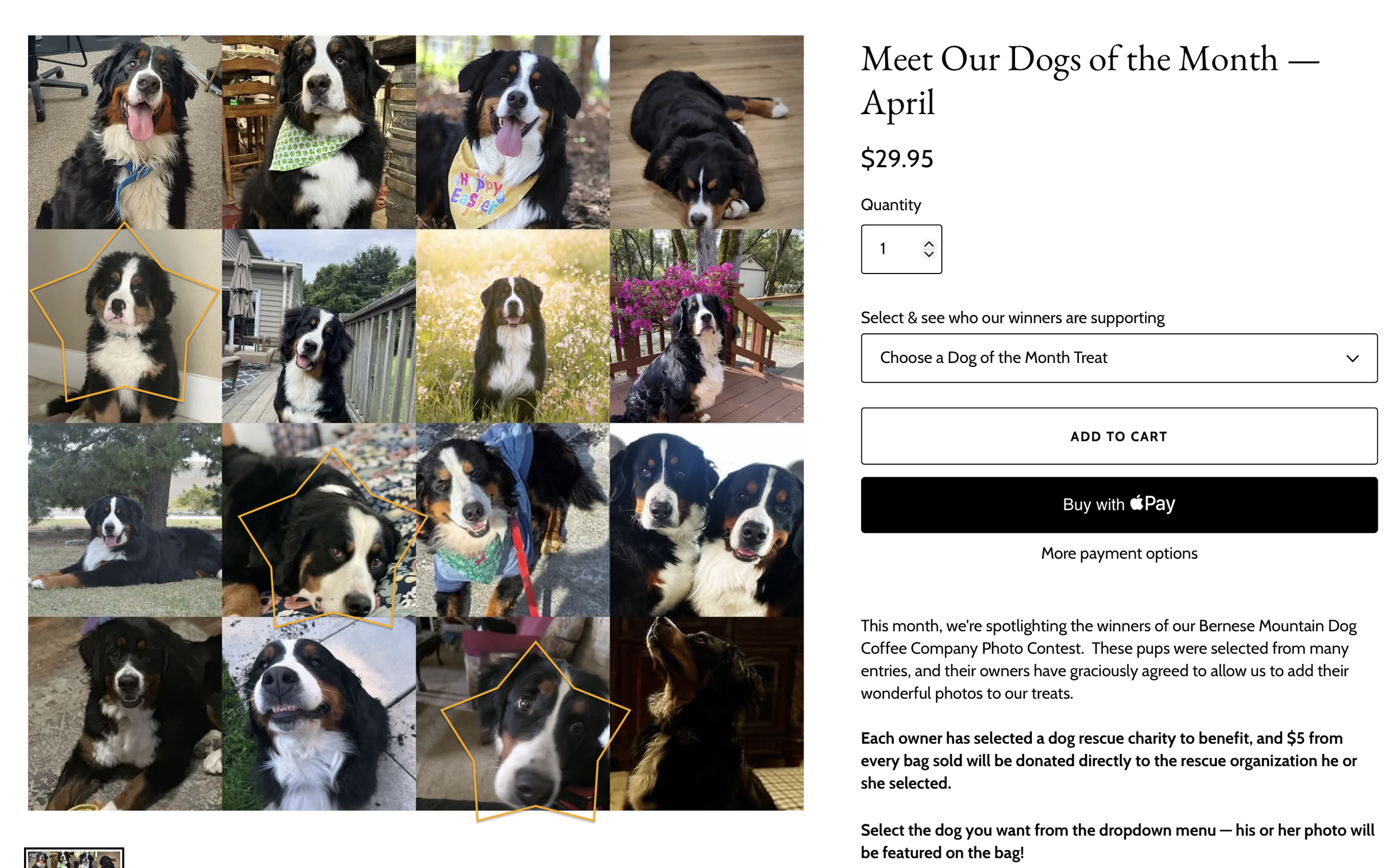 This month, weβre thrilled to spotlight the winners of the Bernese Mountain Dog Coffee Company Photo Contest β Vesper, Holly, and Pax ! These adorable pups were selected from many wonderful entries and are featured as the April Dogs of the Month.
